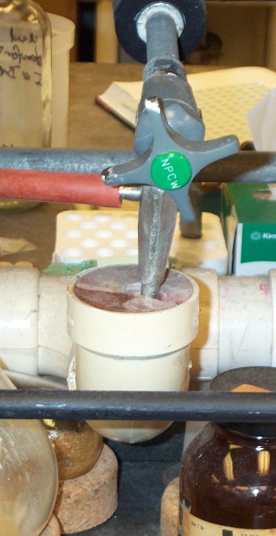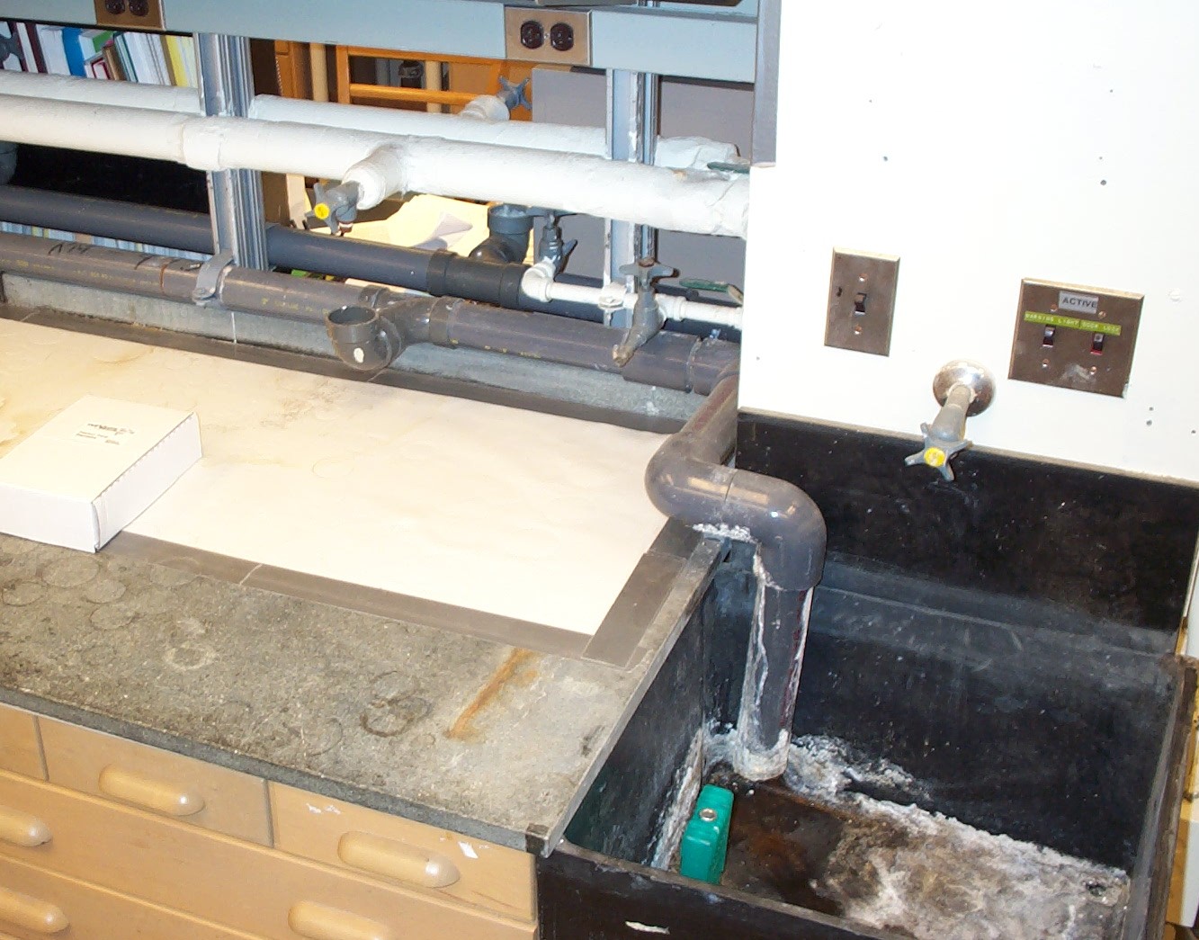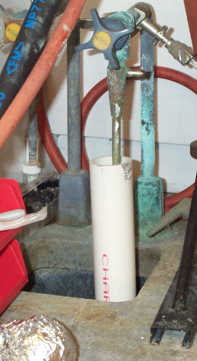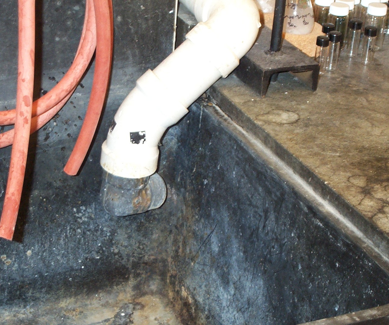 into the bottom of the sink, or hanging into a bucket or beaker ... there
