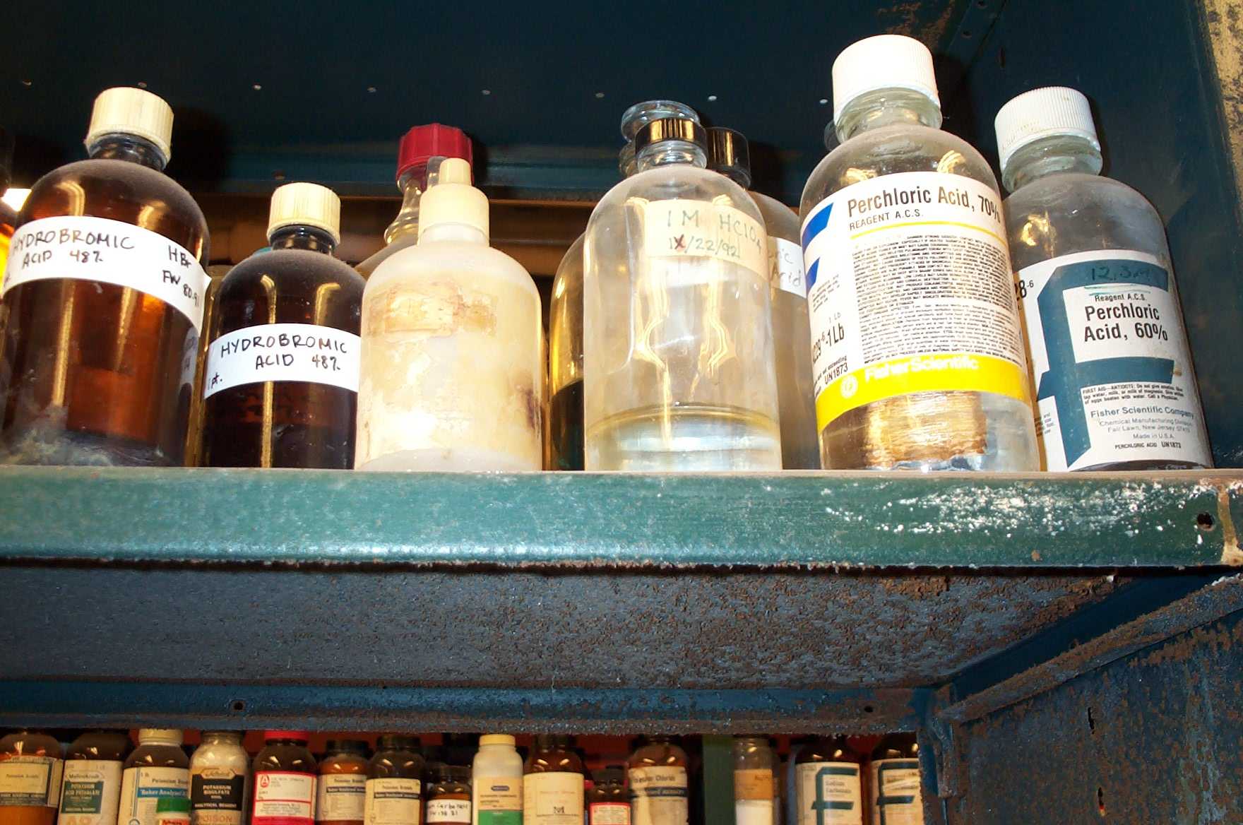 "Containers of chemicals are inadequately labeled. If acronyms,