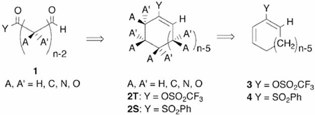 | 186. | Chiral Carbon Catalog 2 Synthesis of 6-Carbon Termini-Differentiated Stereotriads via Symchiral 2-Trifloxy-1,3-cyclohexadiene monoepoxide. Hentemann,M.; Fuchs, P.L. Tetrahedron Lett. 1999, 40, 2699-2702. Jacobsen epoxidation of 2-trifloxy-1,3-cyclohexadiene provides a valuable asymmetric monoepoxide product that can be readily manipulated to efficiently provide highly-functionalized symchiral cyclic and acyclic synthons.