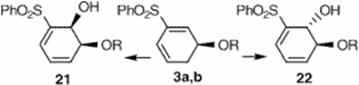 | 190. | Chiral Carbon Catalog 4 Asymmetric Epoxy Cyclohexenyl Sulfones: Readily Accessible Progenitors of Stereodefined Six-Carbon Arrays. Hentemann, M.; Fuchs, P.L. Organic Lett. 1999, 1, 355-357. Enantiopure epoxy vinyl sulfones serve as highly effective substrates for a variety of stereo- and regiospecific oxidation and nucleophilic functionalization reactions. These materials can be easily transformed to cyclic and acyclic six-carbon segments. Nucleophilic epoxidation of 3a,b followed by palladium[0] catalysis enables access to differentially protected arene diols 21 and 22.