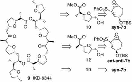 | 194. | Chiral Carbon Catalog 5 Synthesis of Enantiopure Termini-Differentiated Heptane Stereotriads. Jiang W.; Lantrip, D.A.; Fuchs, P.L. Organic Lett. 2000, 2, 2181-2184. Enantiopure epoxy cycloheptenyl sulfones syn-7b and anti-7b are prepared in five high-yielding and stereospecific operations from 1,3-cycloheptadiene. These substrates serve as effective precursors for cis- and trans-substituted tetrahydrofurans (12, 10) which are segments of the antineoplastic agent IKD-8344.