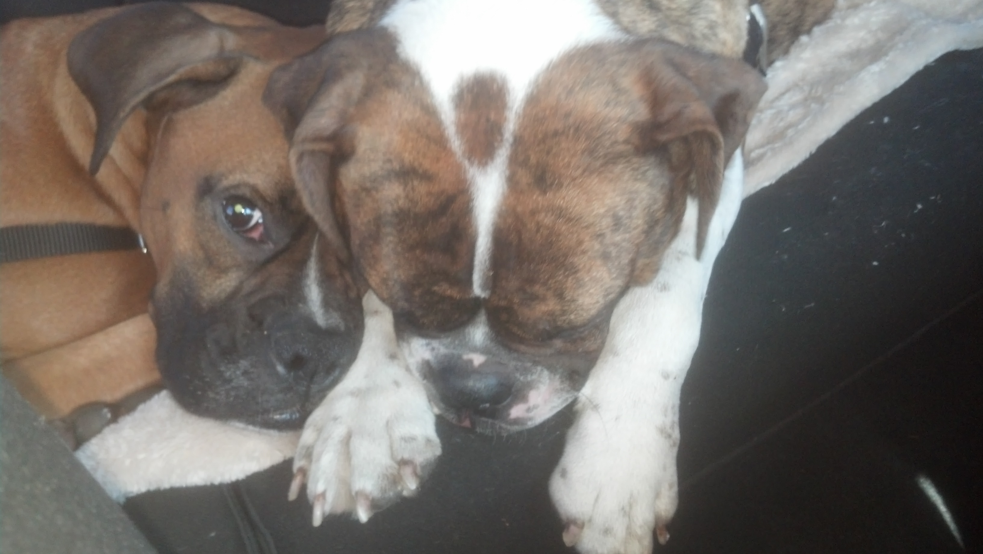 Guinness is the fawn boxer (left)